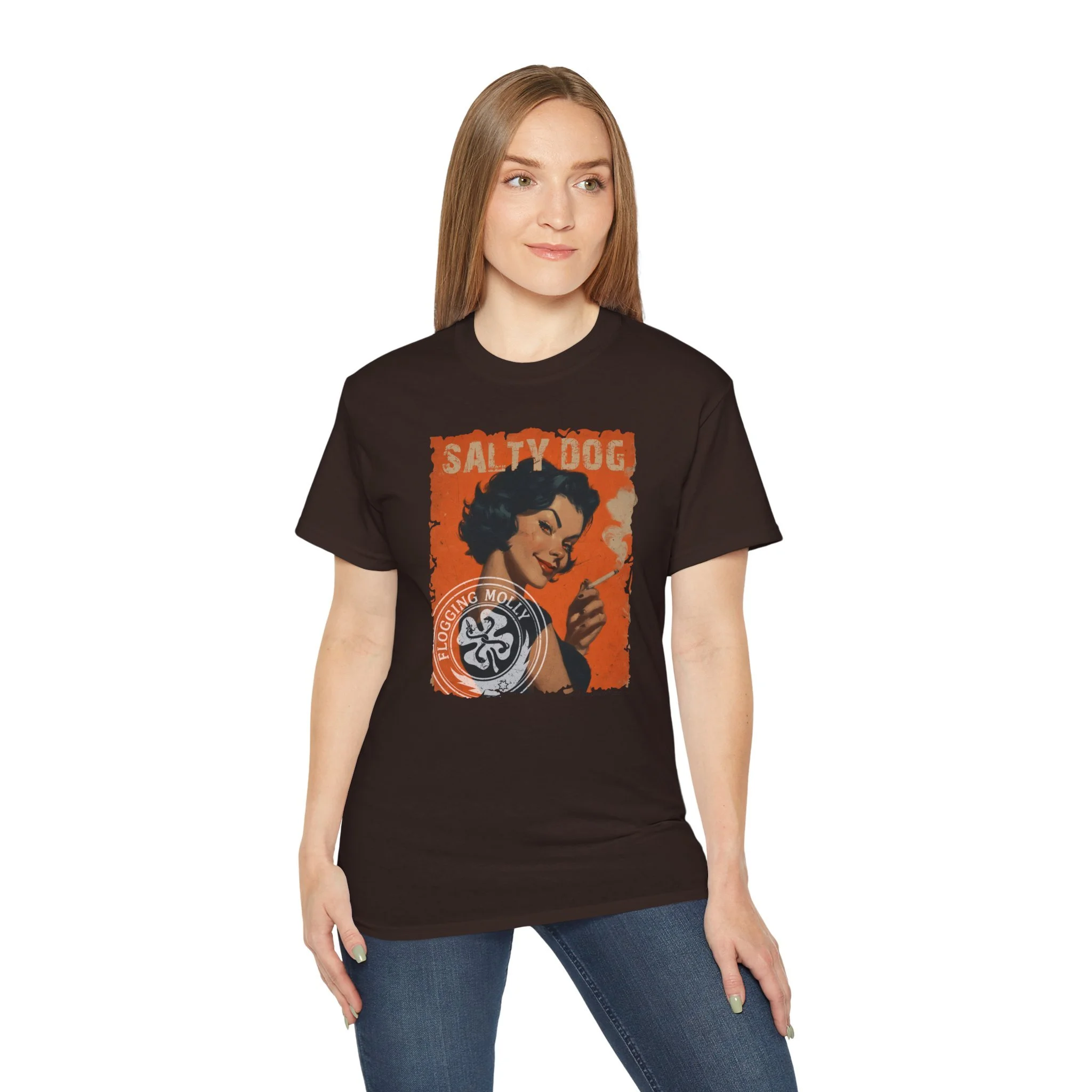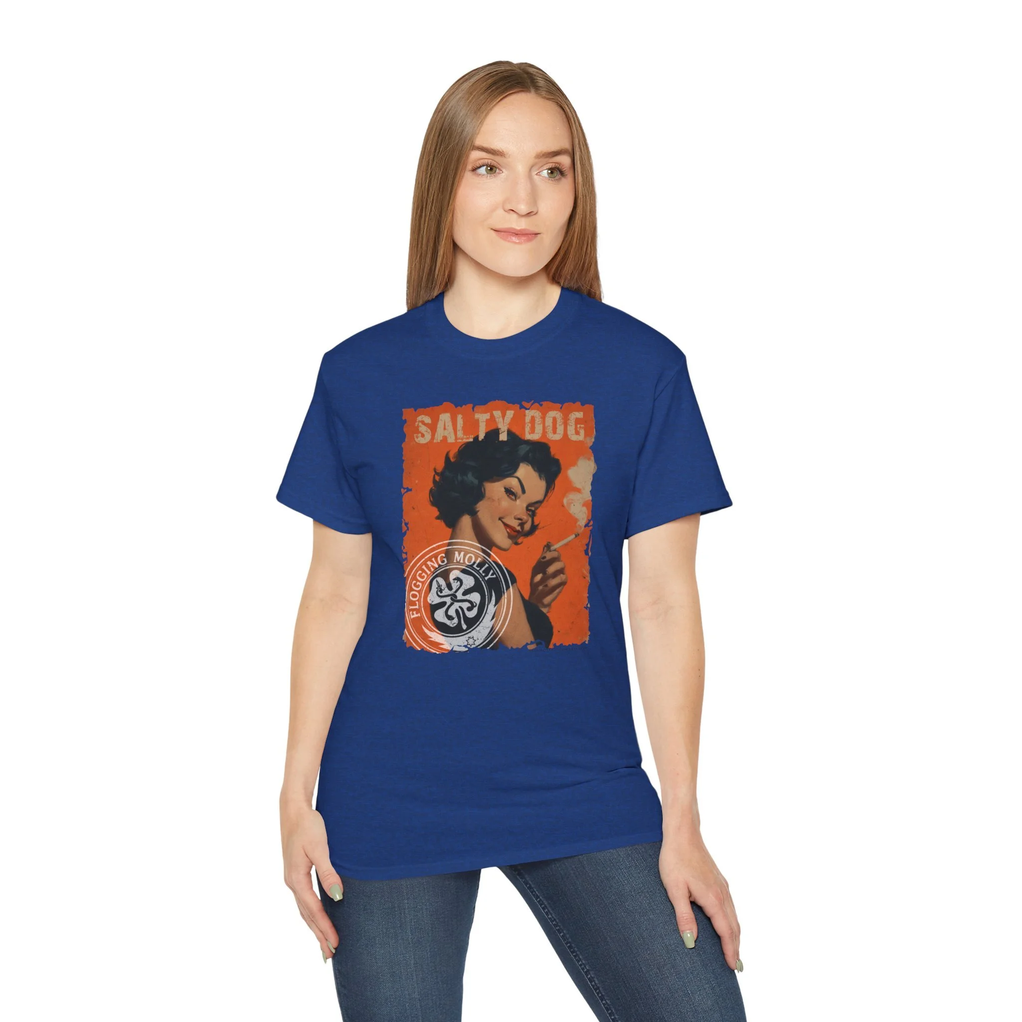 Celebrate your love for the band with this tee showcasing the song "Salty Dog". The image has nothing to do with the song except she appears to be someone that would have salty word or two to share with you. I mean she's smoking a cigarette for goodness sakes.